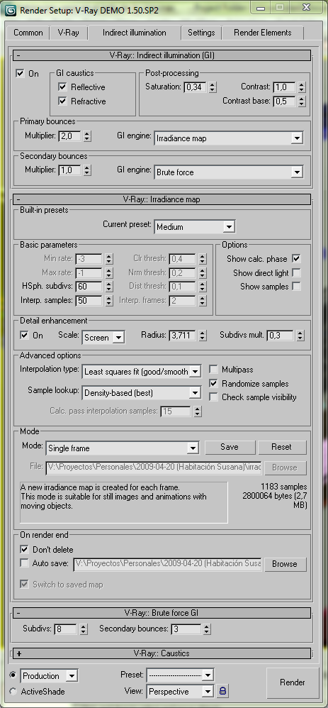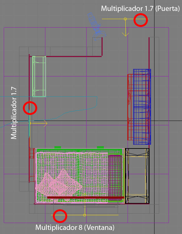 La iluminación la estoy haciendo con Vray (más adelante colgaré una vista con la distribución de las luces).