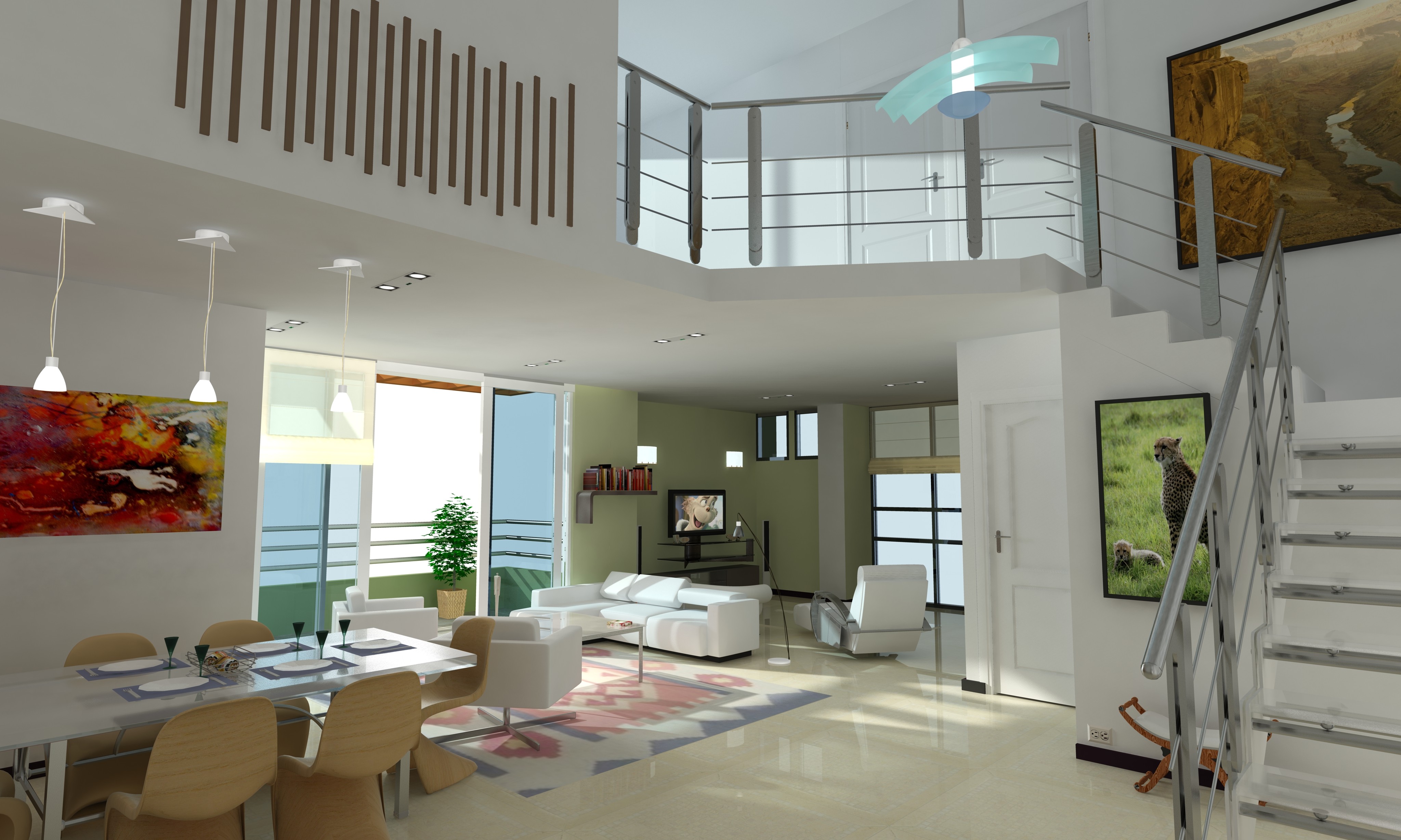 No lo veo mal, pero puede quedar mucho mejor, por decirte algo, la tela del piso no tiene relieve, las barandas están en el aire y se cortan de manera horrible, el vidrio de la puerta ventana no parece vidrio, el intento de lámpara que colgaste arriba le quita mucho realismo, la iluminación le falta Final Gather o algo, la perspectiva la veo fuera de ángulo. Saludos.