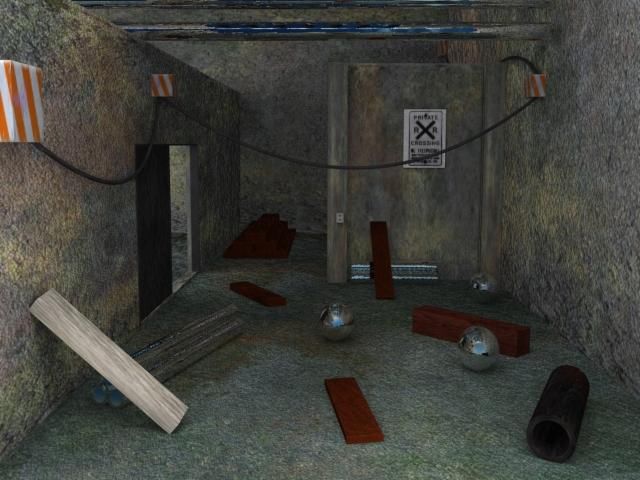 Y la escena en sí, no sé, deberías trabajar algo para modelar, no sé, algo que pegue más en un taller. Es que un tablón de madera y otros rojo y tres mega canicas tiradas en el suelo y un cilindro verde no dicen nada.
