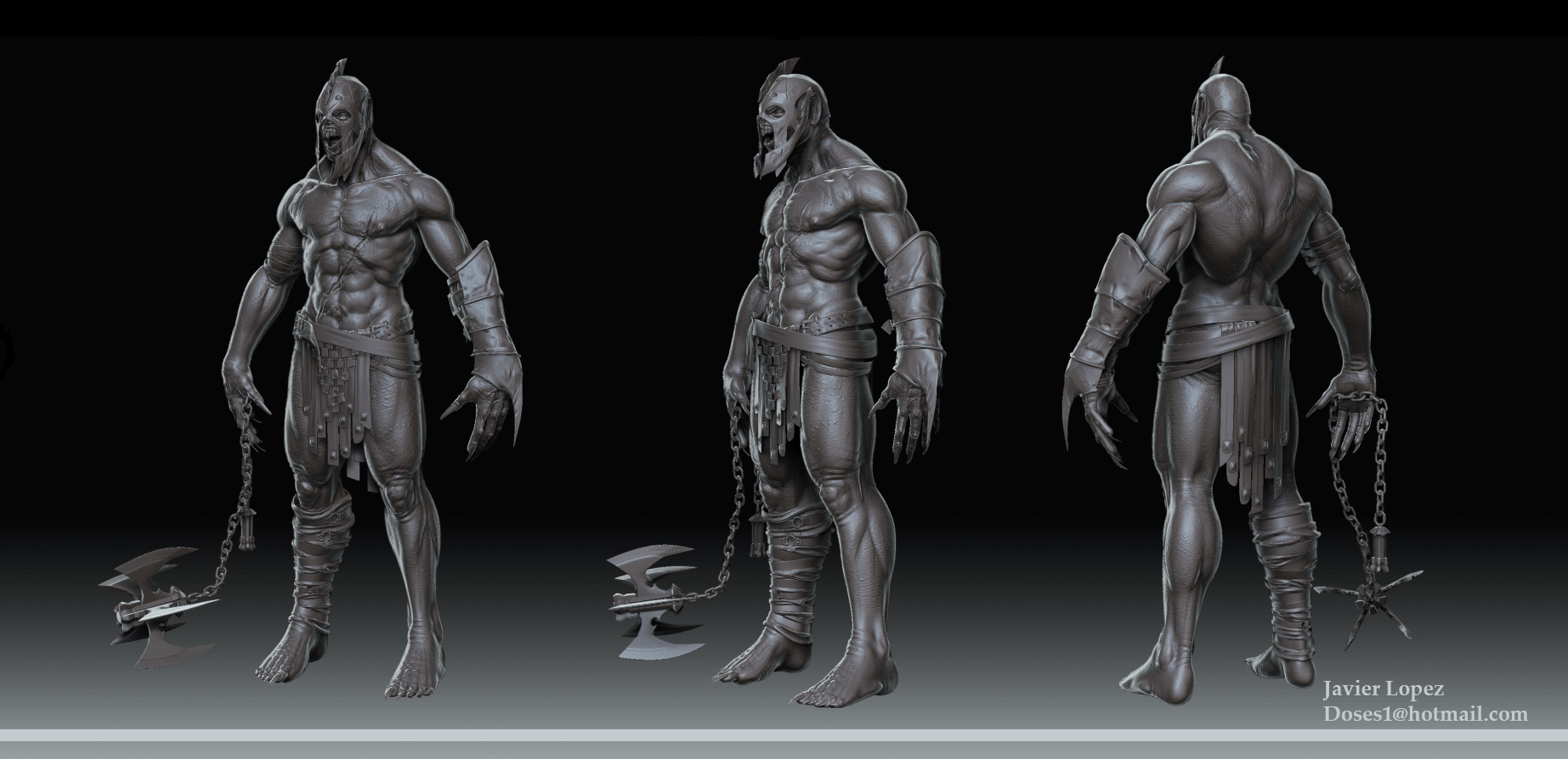 No se en que acabara no sé si será para hacerlo para cine o sea alta, o para videogames, o simplemente se quedará en un modelo puesto en postura en ZBrush, no lo tengo claro, creo que en principio será para lo primero, aunque nunca se sabe. Si algún buen animador estuviese interesado en hacer algo con él, yo estaría encantado.