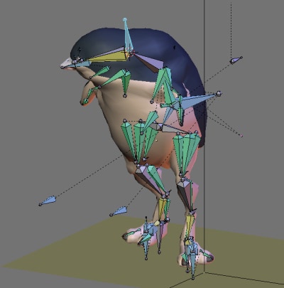 With the new animation features, the rigging work flow has ben tremendously improved, now it is enough todo click on the screen todo add Bones, and by assigning the IK constraint todo one of them you can quickly build the IK chain. In just a few minutes, y remade the basic armature for the penguin and then started todo add constraints todo automate some functions.