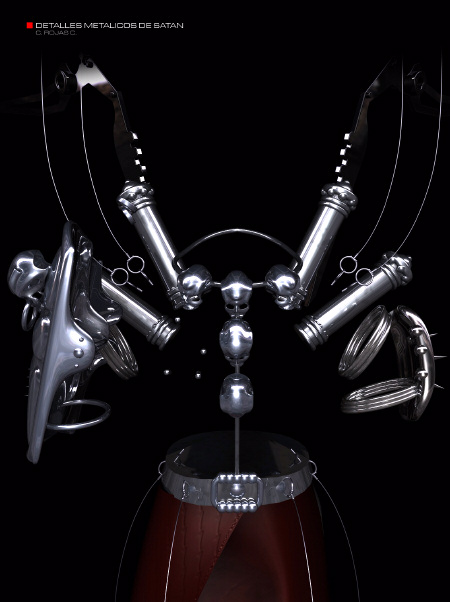 Estos fueron los 3 elementos principales que conformarían la imagen, luego el fondo debería mostrar la concepción c, rojas c. (bio) clásica de la idea de infierno que por consenso se pose, un mar de fuego con escenas de sufrimiento. El incorporar fondo no era parte de la escena, o mejor dicho del gusto personal para componer imágenes, ya que siempre prefiero que los personajes se muestren en fondos neutros, la idea original se las mando como regalo junto con la revista, a un tamaño de 100 centímetros por 60 centímetros aproximadamente.