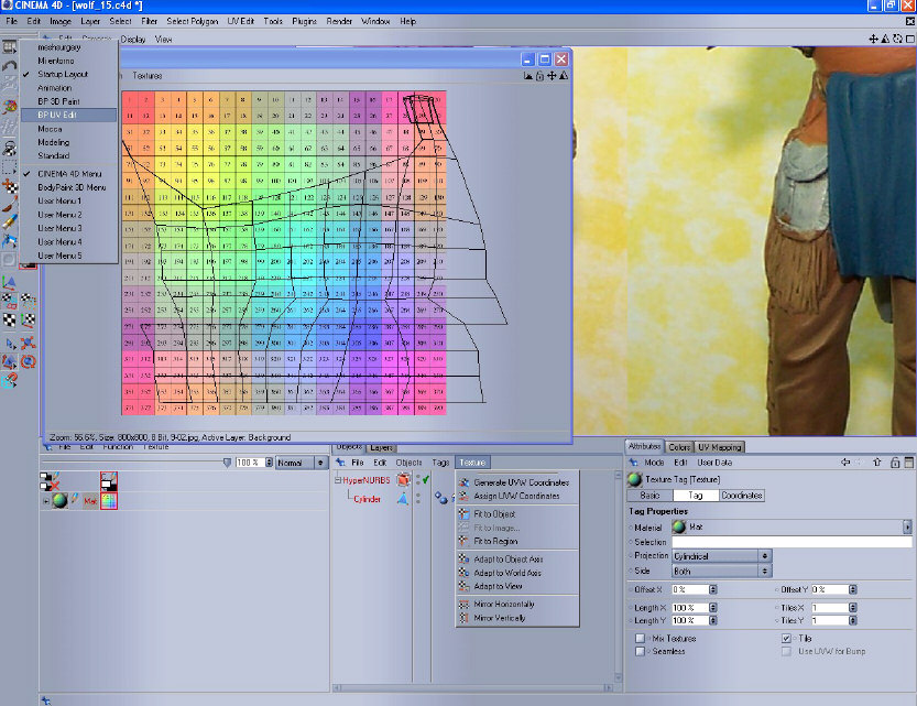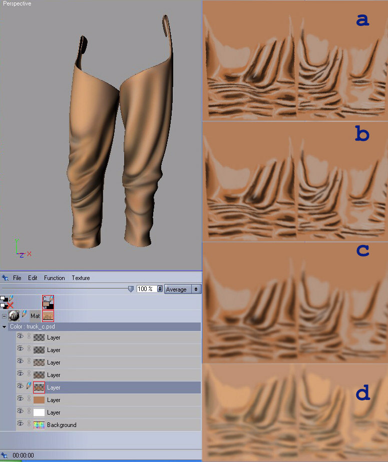 Técnica modelando y pintando ropas. Por Juan Muñoz (juan4d). Siguiendo con la tónica del anterior tutorial, en esta ocasión vamos a intentar quitar el miedo a aquellas personas que se asustan a la hora de crear o desarrollar objetos complejos y texturizarlos. En esta ocasión realizaremos un pequeño ejemplo del modelado de ropas y su posterior texturizado para lo cual nos ayudaremos de esa increíble herramienta que es Bodypaint, ra realizar esta práctica he escogido algo simple, pero que nos puede servir perfectamente como muestra del sistema que podemos usar para modelar la mayor parte de ropajes. En este caso se trata de un indio y la parte que vamos a modelar y texturizar serán las calzas de dicho personaje.