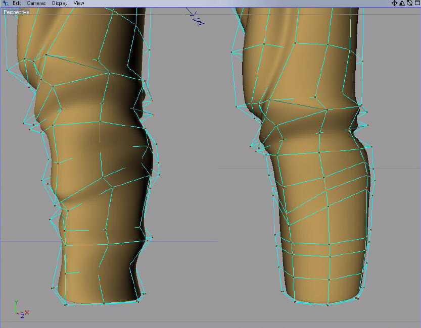 Una vez que tenemos la pieza modelada en su forma más básica, hemos hecho una copia para la otra pierna y le hemos aplicado el mapeado, es hora de darle forma y empezar a disfrutar modelando las arrugas, que en definitiva, es lo que le va a dar viveza a nuestro modelo.