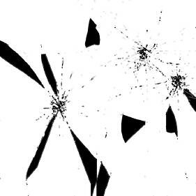 También fueron creadas en Adobe Photoshop las líneas que marcan las grietas del espejo roto, diferenciando por un lado las partes que faltan de la rotura en sí (incluidas en el canal alfa) de las grietas que marcan por dónde estalla el cristal, como podéis ver en estas imágenes.
