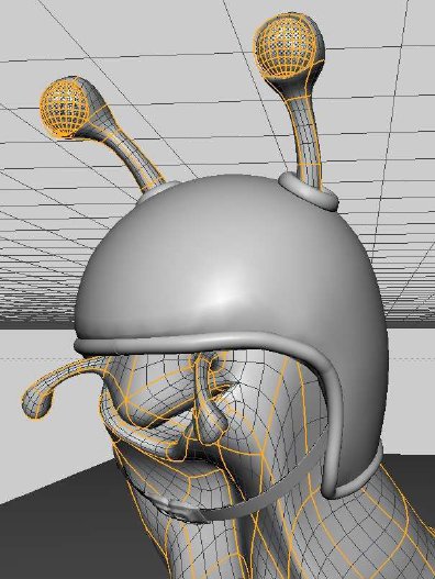 Las antenas y cuernos están creadas a partir de extrusiones interiores y con varias extrusiones para dar la longitud necesaria en cada caso, así como para conseguir nuevos polígonos con los que modificar el modelo en esa parte en concreto. Para la boca he seccionado varios polígonos a los que luego he aplicado una extrusión interior.