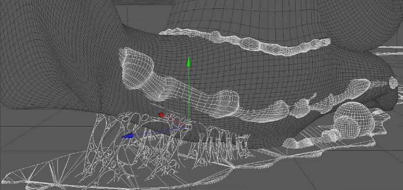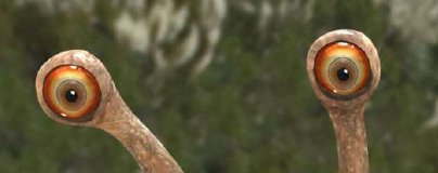Las babas en la abertura del caparazón, así como las del cuerpo y suelo están realizadas mediante Nurbs de recorrido deformado con distintos grosores. Los legajos pegajosos son eps importados desde FreeHand.