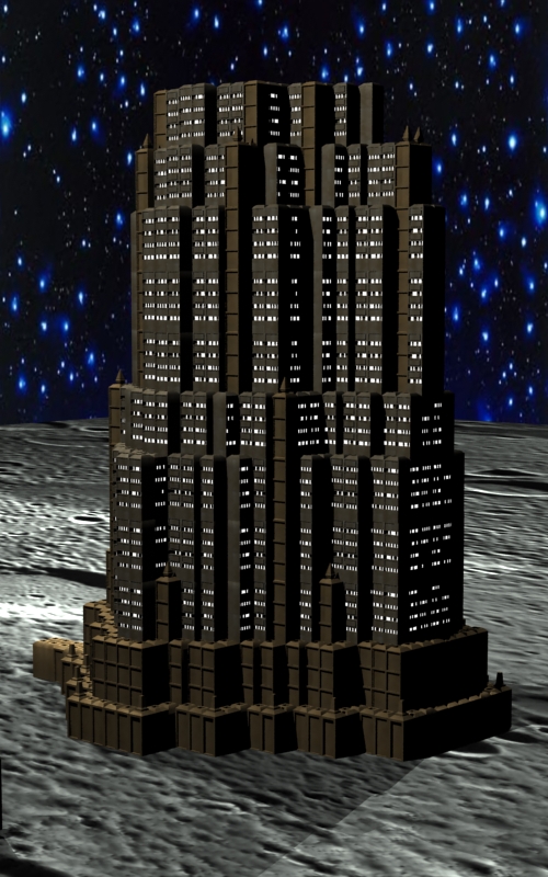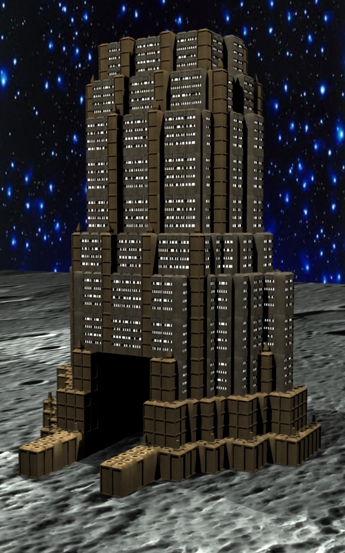 Bueno, pues aquí sigo con la colaboración para el tráiler de un videojuego online ambientado en el espacio. Mi siguiente creación es un edificio de viviendas enorme que me servirá como base para empezar a crear posiblemente una ciudad galáctica.