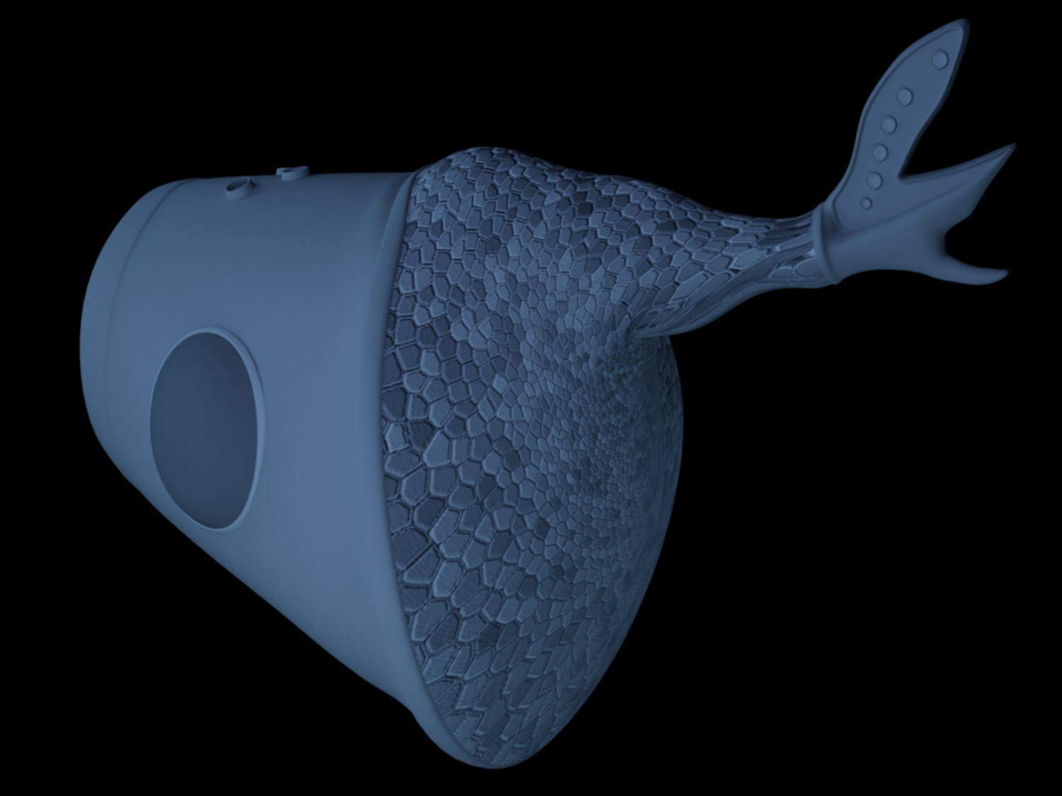 Hola he modelado este pez mecánico a partir del dibujo de un amiguete y quería darle una sorpresa y texturizarlo y ambientarlo, pero la verdad que no sé por dónde empezar.