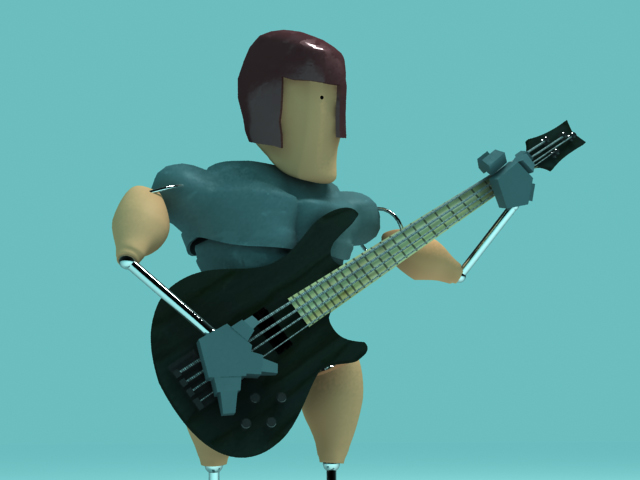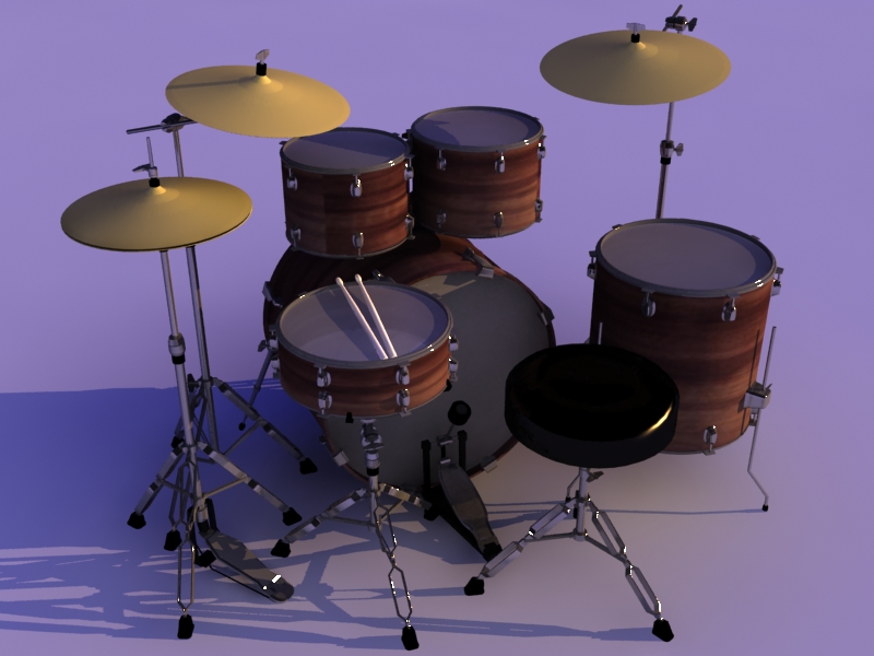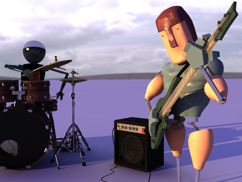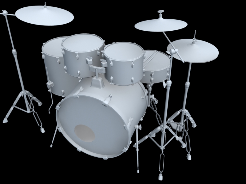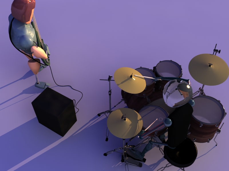 Aquí os dejo el modelado completo (ya no modelo más) de una batería simple que ha ver si meto en mí próxima animación. De paso os adjunto al bajista que lo acompañara.