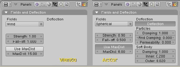 No borres la rejilla o su sistema de partículas, porque los necesitaremos después. También está de más decir que el suelo y el actor deberían convertirse en deflectores software bodies (software bodie deflectors) para que Blender calcule la colisión de las plumas en torno a ellos.