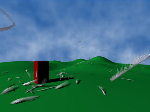 Lo último, pero no menos importante, es que la detección de colisiones para nuestro sistema de partículas no es muy precisa, muchas plumas caen a través del plano, y luego se devuelven. Eso tal vez estaría bien para las plumas que caen fuera de cámara, pero esto arruinaría cualquier toma de tipo acercamiento (close up).