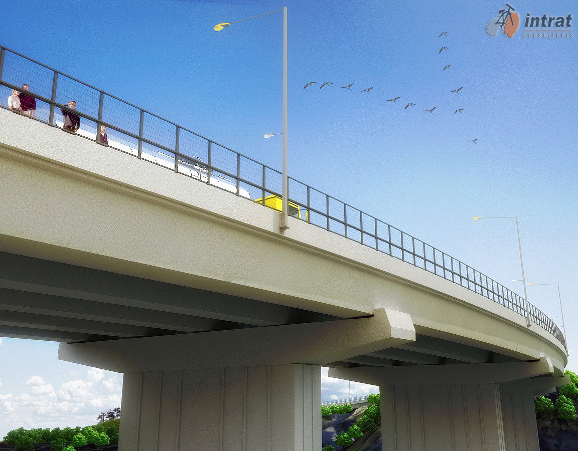 Al viaducto le pondría además de las vallas que le has puesto, las clásicas onduladas, para darle más realismo, y más suciedad, (y para proteger a los peatones) en las texturas, aunque sea nuevo, hay humedades, los vehículos añadidos de biblioteca, también se ven relucientes, que para lo que es también va bien.