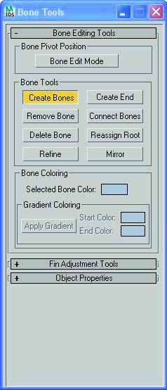 2- Seleccionamos el primer hueso de la cola (el padre). Menú animation> ique Solvers> Hi Solver, y hacemos clic en el último hueso.