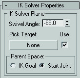 Con i. K, podemos cambiar la orientación del agulo de la cadena de huesos, con swivel angle, que encontramos en el icono de motion en la persiana IK Solver properties.