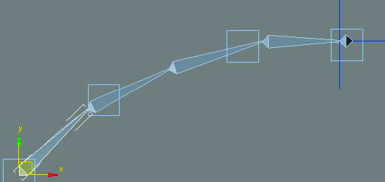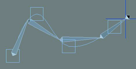 Para mover esta cadena de huesos movemos el hijo, y el Solver se encarga de calcular el resto de movimientos. Con i. K, sólo podemos mover el hijo, ningún hueso más, mientras que con f. K, podemos mover cualquier hueso de la cadena en cualquier dirección.