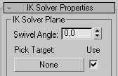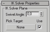 4- Creamos un 2ayudante para el ángulo de la cola. Con Solver marcado, y en el icono motion en la persiana IK Solver properties, en pik target, pinchamos en el botón de none y hacemos clic en el 2ayudante. Al mover el ayudante se moverá la inclinación de la cola.