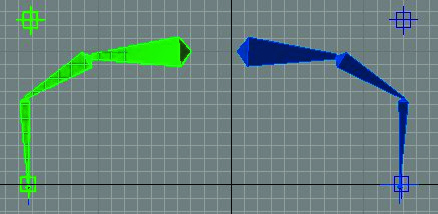 7- Animation> bone toolsy cambiamos el color de los huesos, la izquierda azul y la derecha verde. (para que nos sea más fácil la animación).