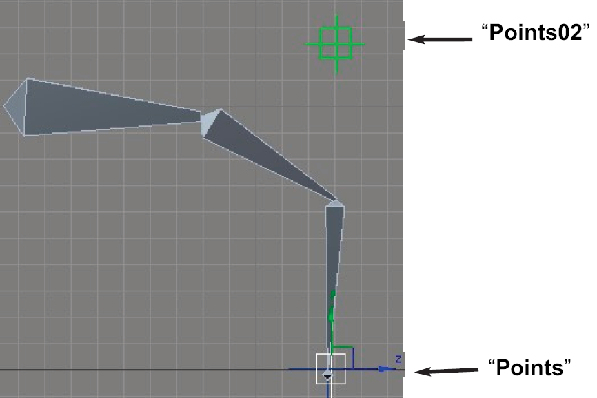 Para que cuando movamos el primer ayudante points, el segundo ayudante points02 no se quede atrás, vinculamos este a points para que le siga, (points02 sea hijo de points).