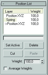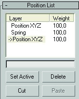 El nuevo position XYZ se añade a la persiana de position list, pero tenemos que activarlo, (el controlador que tiene la flecha a la izquierda es el que manda), lo señalamos y damos al botón de set active, y la flecha se pone a su izquieda. Ya podemos mover la esfera.