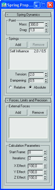 4- En cierto frame quiero que el Spring deje de actuar sobre el aguijón, para ello nos ponemos en el frame 50 (por ejemplo), activamos autokey y movemos el weight hasta volverlo a dejar el 100 (así del 0 al 50 el weight será de 100), en el frame 55 ponemos weight a 0.