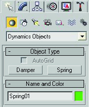 En create - Geometri - Dinámicas object, podemos elegir el objeto Spring, que actúa como muelle cuando lo insetamos entre dos objetos.