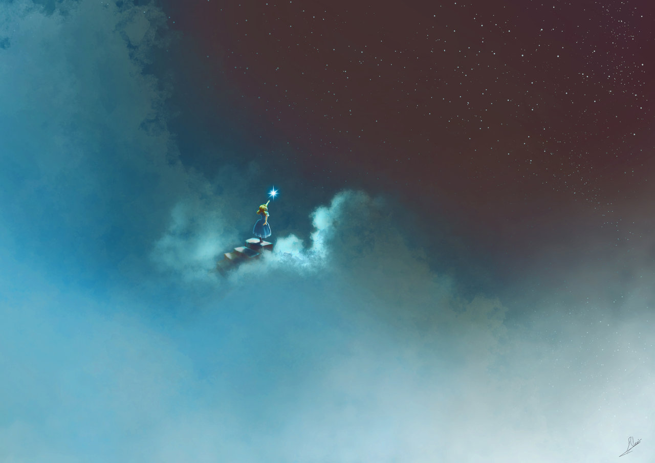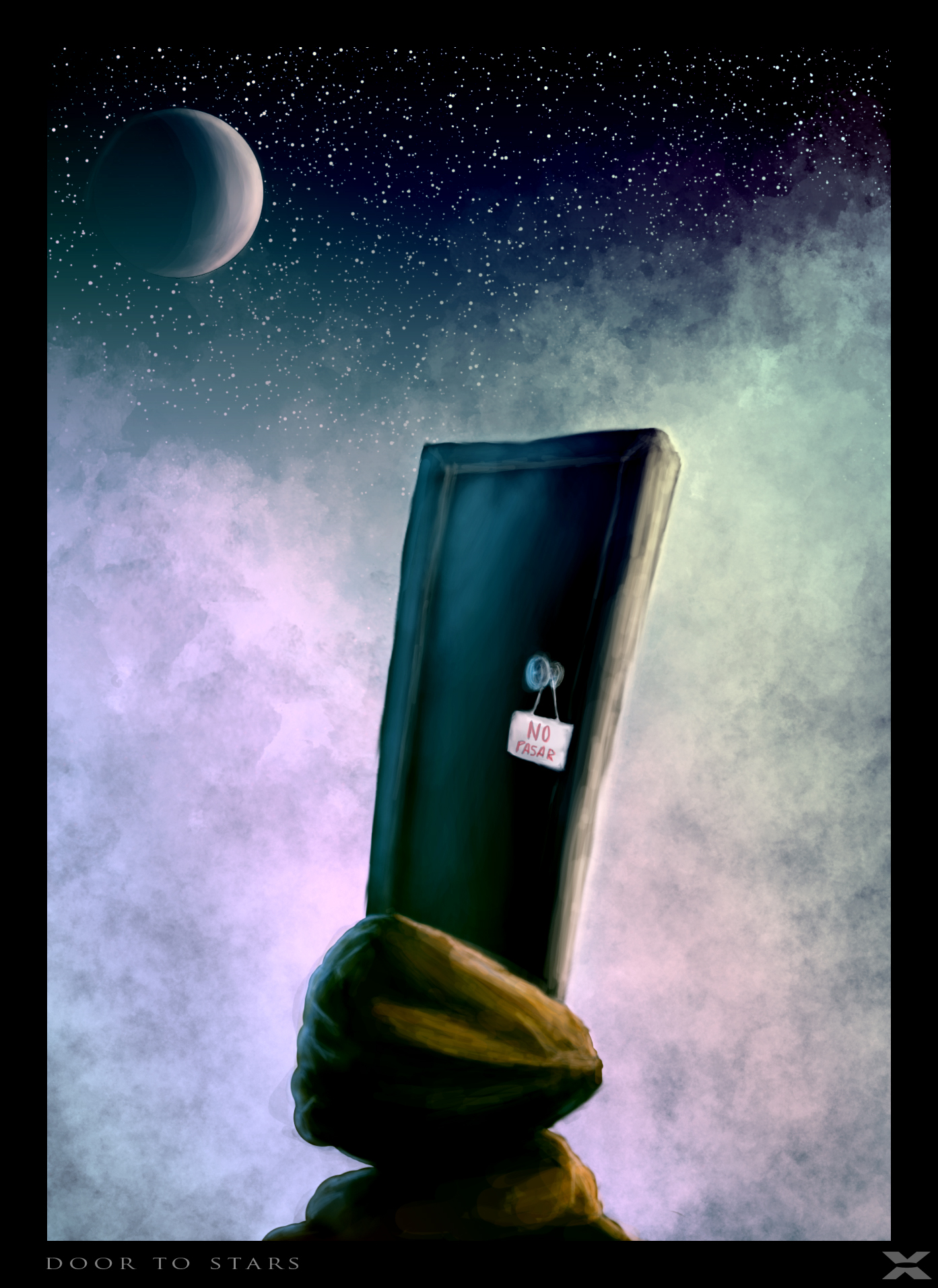 Si, definitivamente dibujar caballos no es lo mío. Tendré que mirar de practicarlos más. Os dejo uno nuevo, más de mi estilo. Lo he llamado puerta a las estrellas.