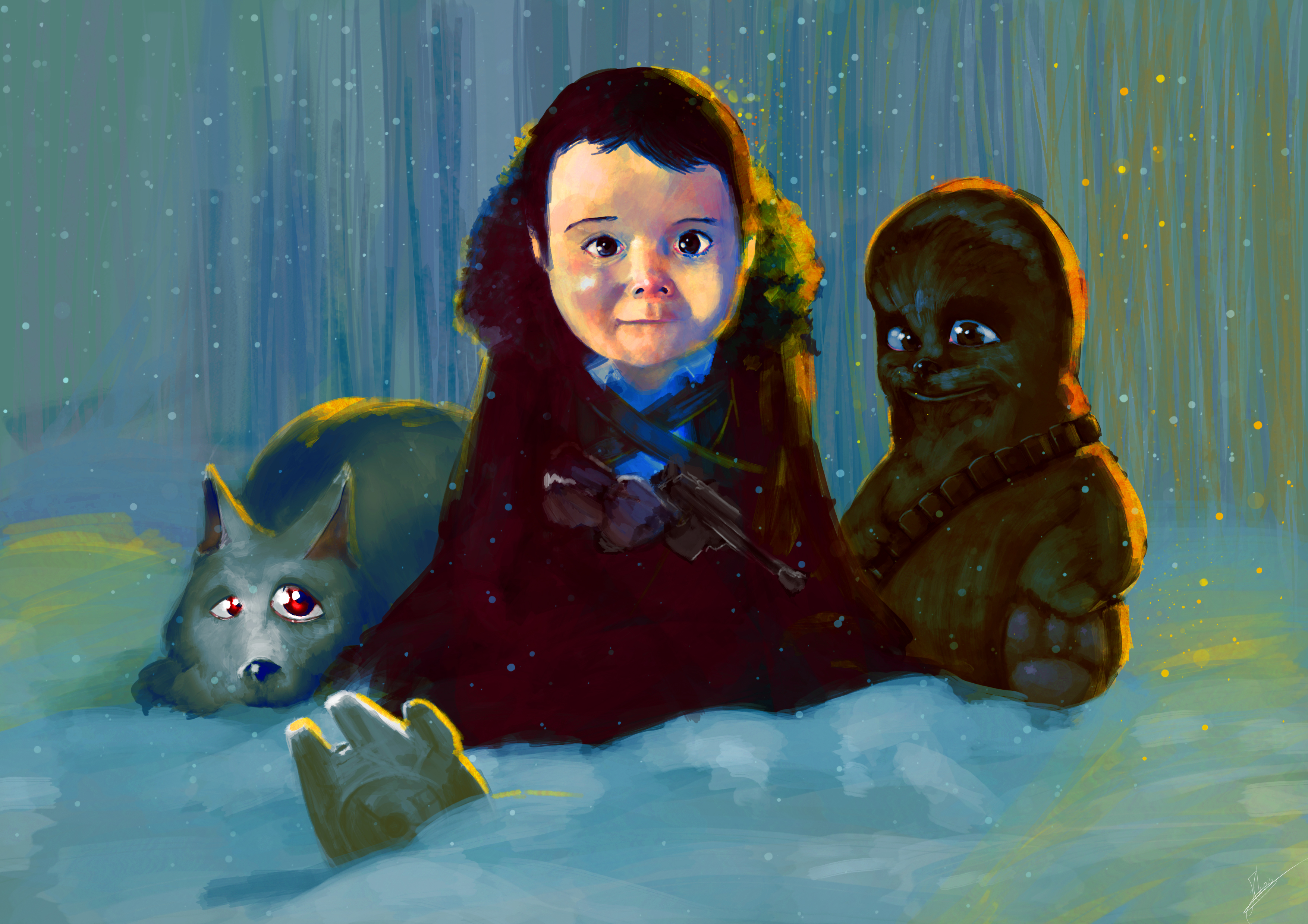 También os dejo una ilustración que hice para él primer cumpleaños del hijo de unos amigos. Se llama Jan, y siempre está la coña de llamarlo Jan Solo o Jan Nieve.