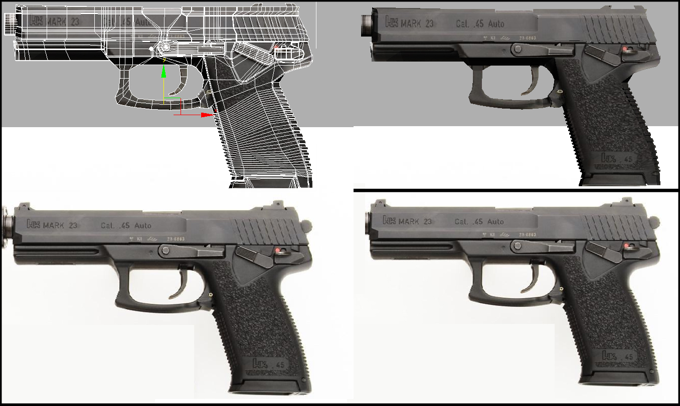 Hola. Saliendo un poco del modelado orgánico hice este modelo de un día de trabajo. Más adelante planeo ponerle la textura definitiva y corregir uno que otro filtro de la pistola que falta por pulir.