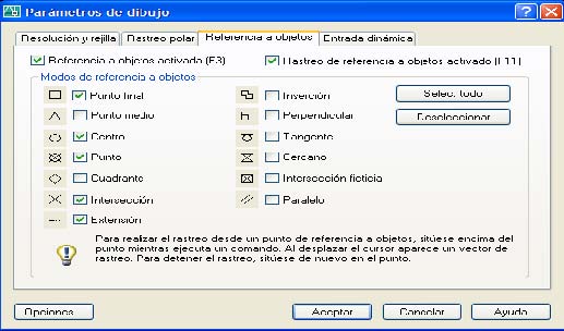 Desde aquí podemos activar también el rastreo Polar (recordemos que lo podemos hacer desde la barra de estado más fácilmente o por f10).