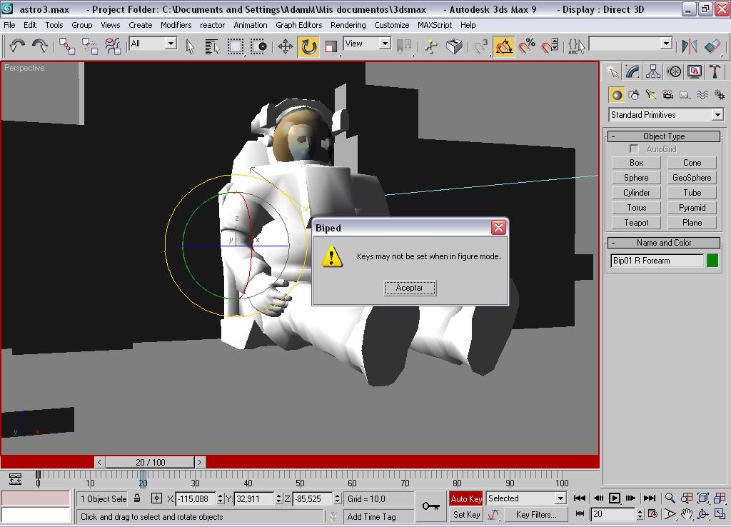 3dsMax 9. Es mi primera animación. Ya aplique mi modelo con el bípedo. Y cuando quiero hacer un movimiento.