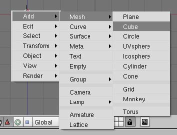 Empecemos creando dos cubos, como lo explicado anteriormente, uno dentro de otro, presionamos la barra espaciadora en el área de trabajo, y colocamos un cubo.