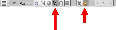 Ahora seleccionamos solamente el cubo pequeño, y hacemos click en el panel object, o presionamos la tecla f7. Luego presionamos el botón physics buttons. (igual que con el cubo grande).
