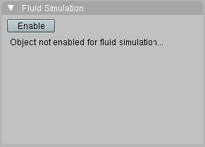 Presionamos el botón enable, y después el botón fluid. Esto significa que el cubo pequeño se convertirá en el fluido y se moverá solamente dentro del dominio, que es el cubo más grande.