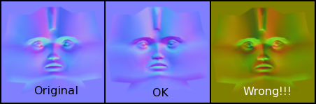 The generated Normal Map is usable with most common Game Engines as it is but, if used in Blender, it causes light and shadows todo be faced the wrong way.