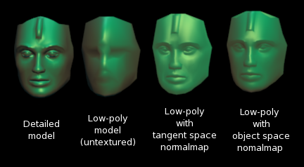 You ned two models, a simple Low-poly one and a high-poly, detailed versión of it. With the right tools, youll be able todo make the Low-poly model look very similar todo detailed one, by Simply applying a Normal Map texture todo it. The Normal Map comes from the detailed versión of the model. blender and denormgen