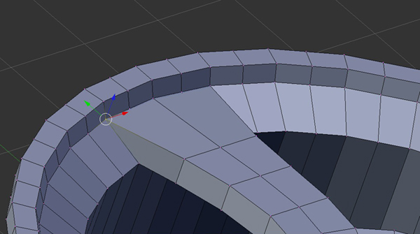 There is one final detail that we ned todo do before we begin work on the spokes of the Rim. Select all the face of the inside of the Rim that falls below the Edge we had moved up. Press s and scale them down just a bit so that they make the inside Walls smaller. Now use the Knife tool todo make a new Edge and move it down so that it resembles fig 010. Finally, the base of the whel is complete. Now we can start working on the spokes.
