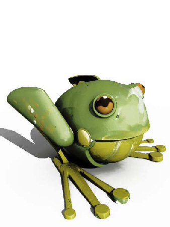 After doing diferent 3d experiments with old tin toys, (zomer and awesome Monkey), y decided todo put aside the idea of modeling from a realworld estoy model and design my own 3d toy. Searching for some dodles in my sketchbook, y found a Little Frog that i wanted todo model in 3d.