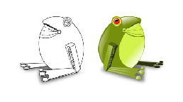 For the concrete case of the frog, y experimented a lot with diferent Shader settings, both in the Blender internal renderer and Yafray, that gave me diferent styles.