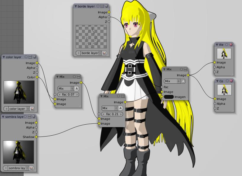 Bueno después de algunos días enfermo vuelvo con mi chica la cual tiene algunas mejoras en cara y pelo. Aún no mucho trabajo en textura, ya que descubrí los nodos de Blender y me he vuelto loco jugando con ellos ahora el objetivo es conseguir un render tipo anime.