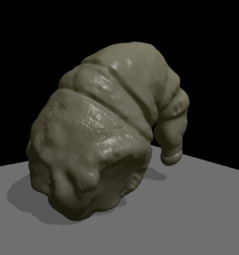 Creo que debería tener variedad tonal con más detalles, un poco de moradete por aquí, tono más carnoso por ahí, zonas más blancuzcas, para darle así tono de bicho monstruoso asquerosete.