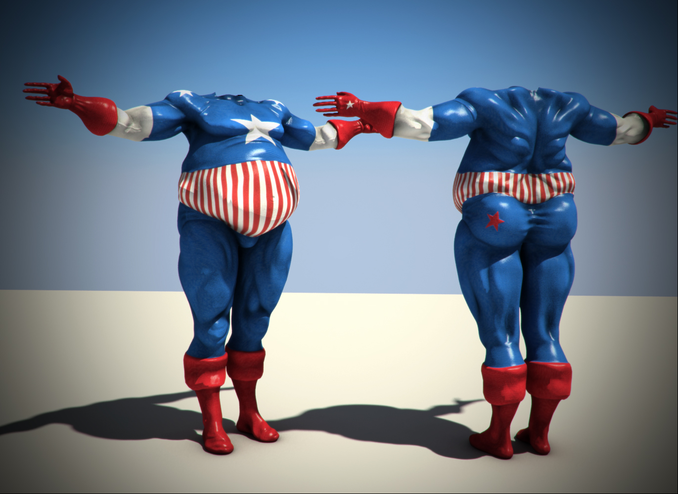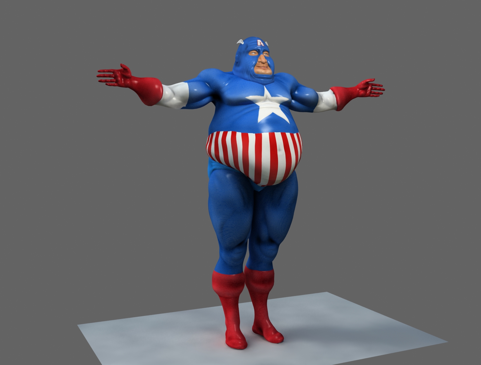 Qué bueno, me encantan los personajes cartoon 3d, esta tremendo el gordo, muy bueno, y por comentarte algo, pero es muy posible que esté yo equivocado, pero veo extraña la barriga, acaba en una especie de pico, como si se hubiese zampado a un supervillano enano y pesado y aún lo tuviese en el estómago.