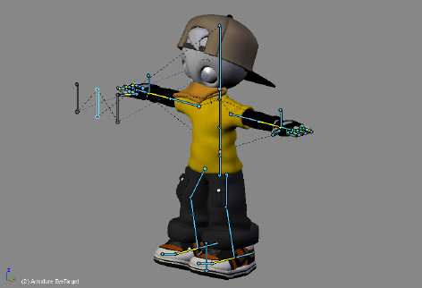This is the part that i enjoy the most, despiste my modest rigging skills, y must say. I went for a simple Rig as i wasnt planning on animating this character at that time. The arms and legs were rigged using IK Chains. The hands were rigged in the same bien that was used in emo & prog rigs. I a los added two Bones todo function as track todo targets for the eyes.