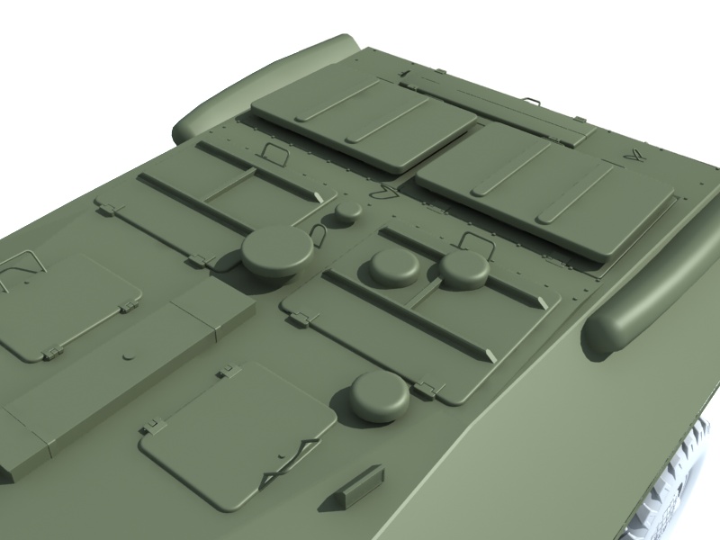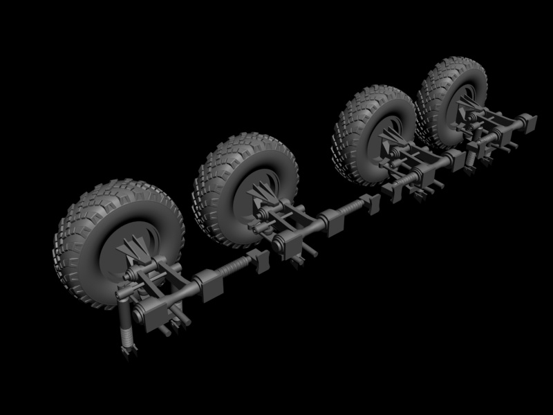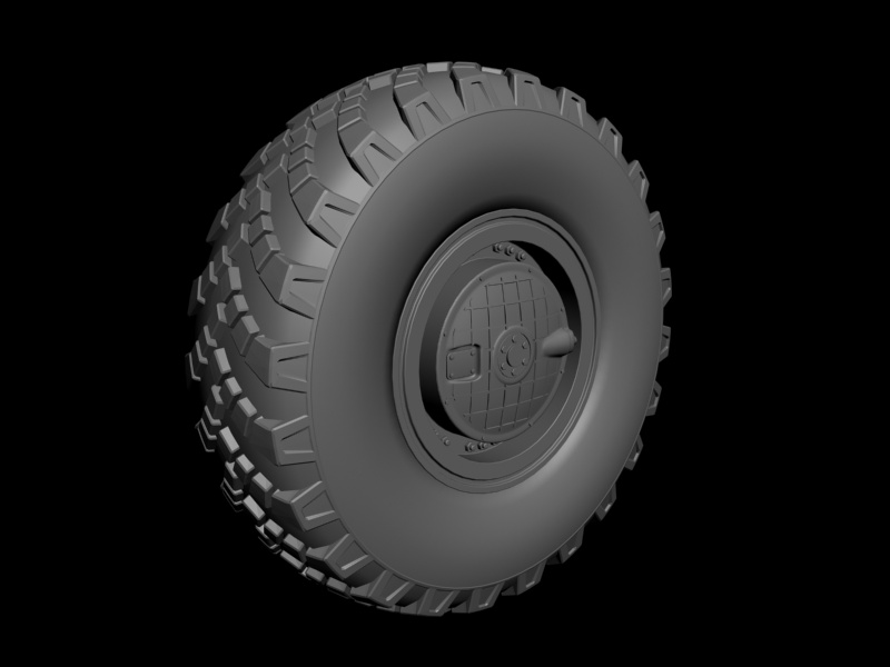 Va de lujo. Ahora mismo no recuerdo haberme fijado nunca en otros modelos de coches o transportes militares, pero creo que si los neumáticos reflejasen el peso que llevan, el modelo tendría más, peso (varga la redundancia).