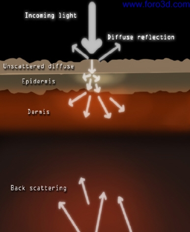 - one last note about the structure of skin: in theory, there is nothing above the epidermis. However, using s (Even in a very subtle way) Will subdue the bumps of your textured models. That why we Will have todo apply another layer, which Will be an un-scattering Diffuse layer. Doing so, you Will be able todo conserve all the bumpiness of your textures, and only this layer Will be textured (concerning the Diffuse Shaders).