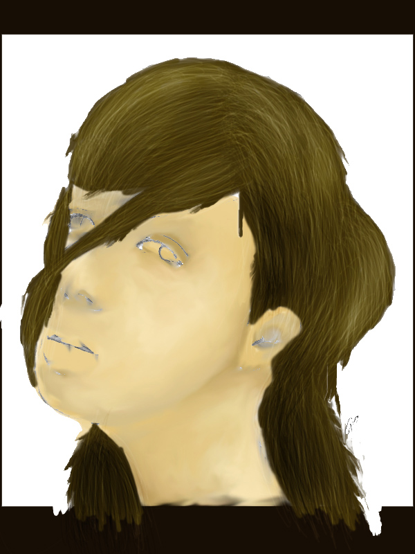 El pelo no me quedo como me tendría que quedar, pero no sé porque. Le hice pelo x pelo con un pincel de 1px y de varias tonalidades y luego lo difumine con la herramienta dedo.