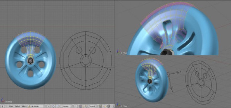 By using the mirror modifier i can quickly duplicate the whel todo the other side of the car.