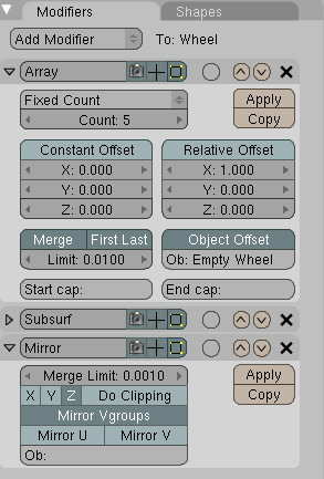 Inside the array modifier the Empty is defined as the object and the array count is set todo 5.