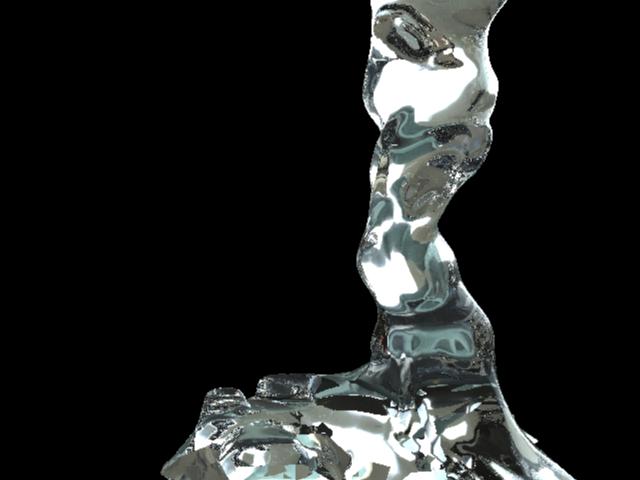 Una vez terminado esto, podemos editar los vértices para darle la forma que queramos, y tal vez editar algún que otro error (por ejemplo, a veces se generan huecos. Para arreglar esto usar el merge vértices). Ahora, simplemente le damos un Polygons->smooth (con 2 de Smoothness) y voila, tenemos el agua. Ahora solo hay que seleccionarlo, tocar f5, ir a lighting and Shading->assing a new material->dialectric material. Usando Final Gather (y si quieren, Caustics) y con un HDRI, hacemos agua (para saber cómo usar estas cosas, vean mi video tutorial sobre HDRI y Final Gather). Sencillito.