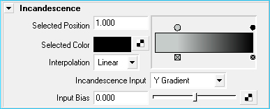 Ahora en intensity vamos a hacer dos cosas: primero, en incandescence input, ponemos y gradient (en un rato explico porque) y después ponemos.